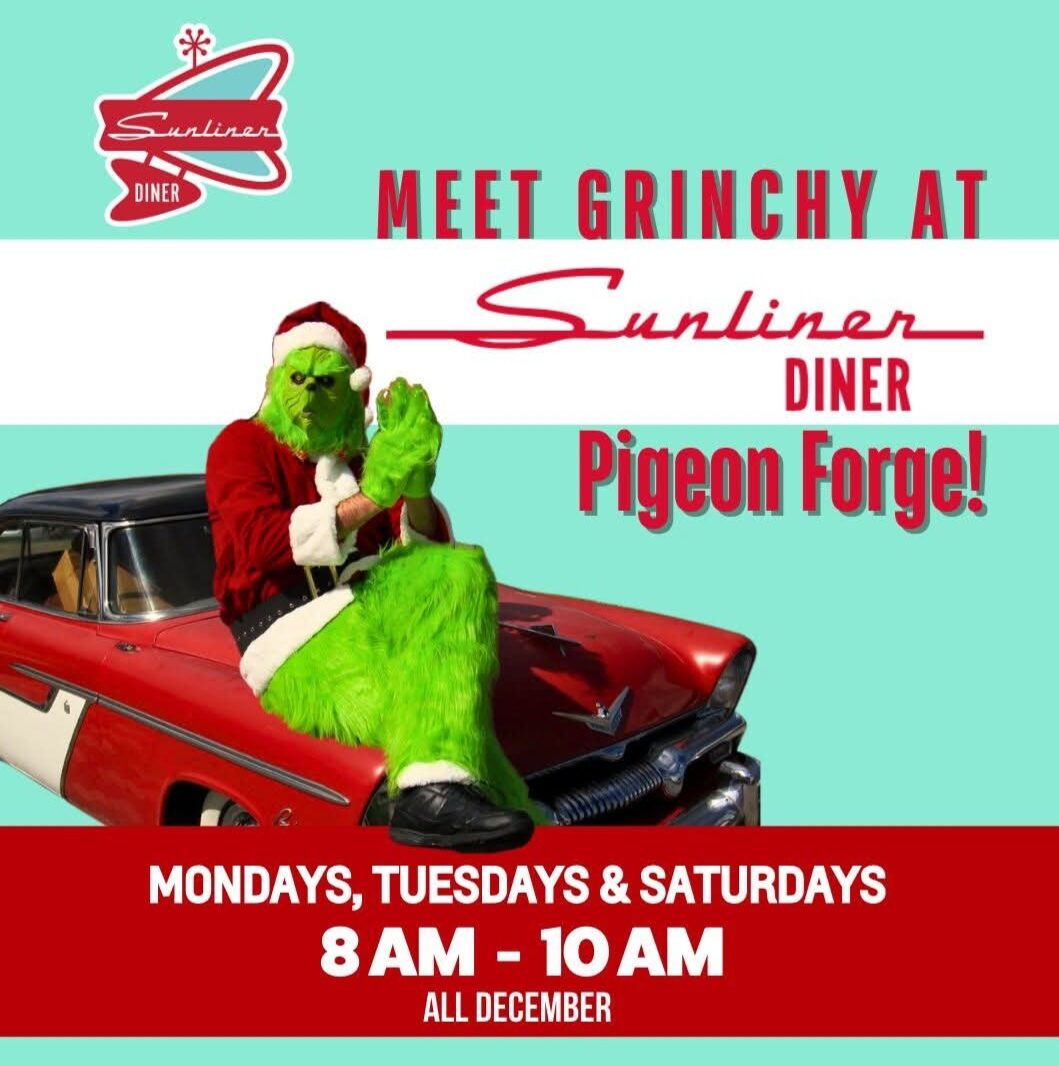 Sunliner Diner 2302 Parkway, Pigeon Forge, TN, United StatesDates: Monday, Tuesday, & Saturday, December 6–23, 2025Time: 8:00 – 10:00 a.m.Location: Sunliner Diner Bring the whole family for a festive breakfast with everyone’s favorite holiday mischief-maker, the Grinch! 🎄💚 Starting December 6th, join us on Mondays, Tuesdays, and Saturdays for a fun-filled morning at Sunliner Diner. Enjoy a delicious breakfast, capture memorable photos, and […]