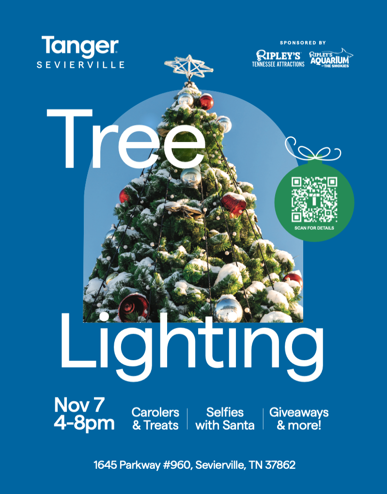 Get ready to kick off the holiday season at Tanger Sevierville! Join us for our 3rd Annual Holiday Tree Lighting Celebration on Friday, November 7th, from 4–8 PM.