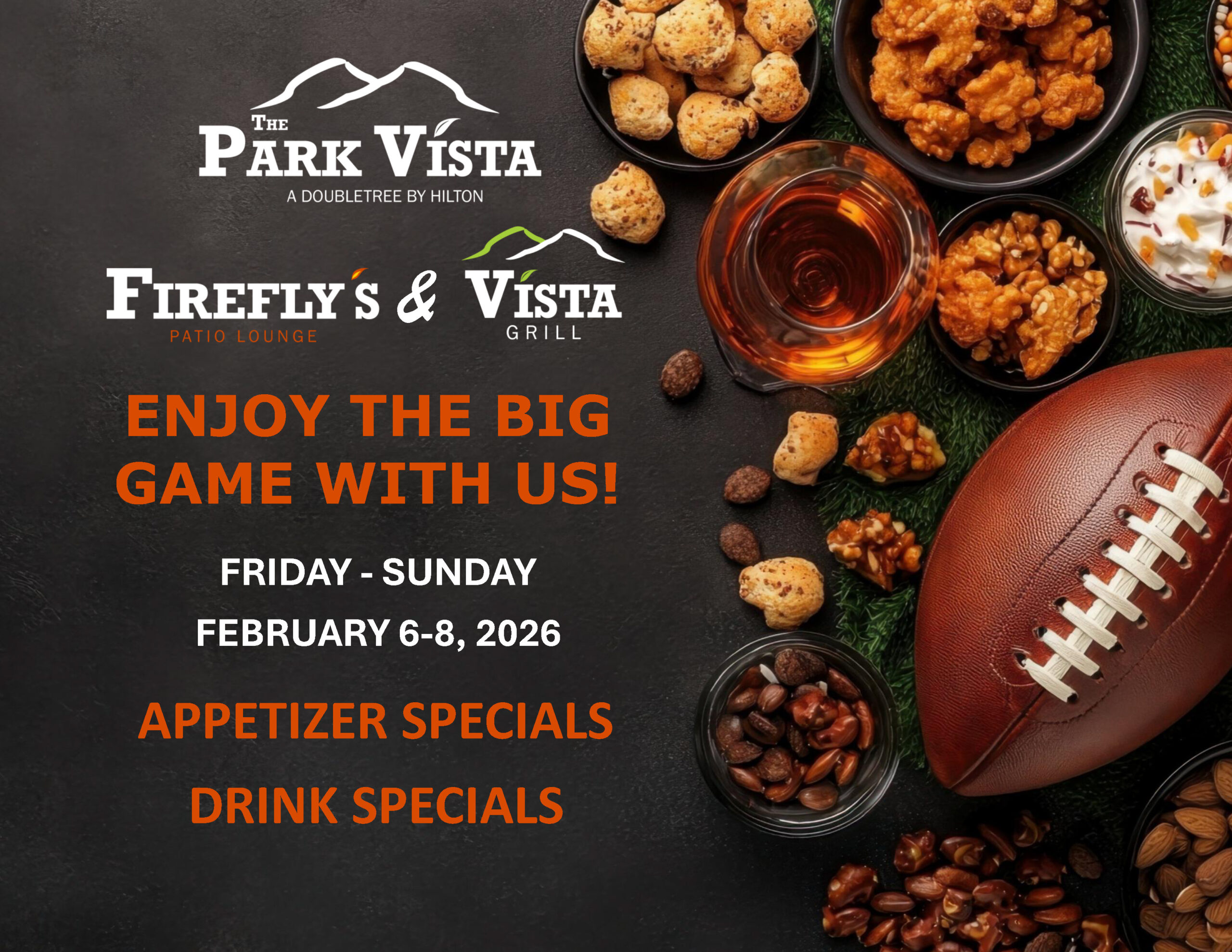 Take in breathtaking views of Mt. LeConte by the firepit while enjoying our weekend-long appetizer and drink specials. From game-day bites to your favorite beverages, everything you need for the perfect Big Game experience is waiting for you!
