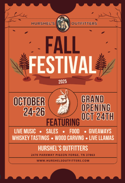 Join us for the Grand Opening & Fall Festival of Hurshel’s Outfitters! It will be three days of Smoky Mountain spirit, outdoor adventure, and community celebration!