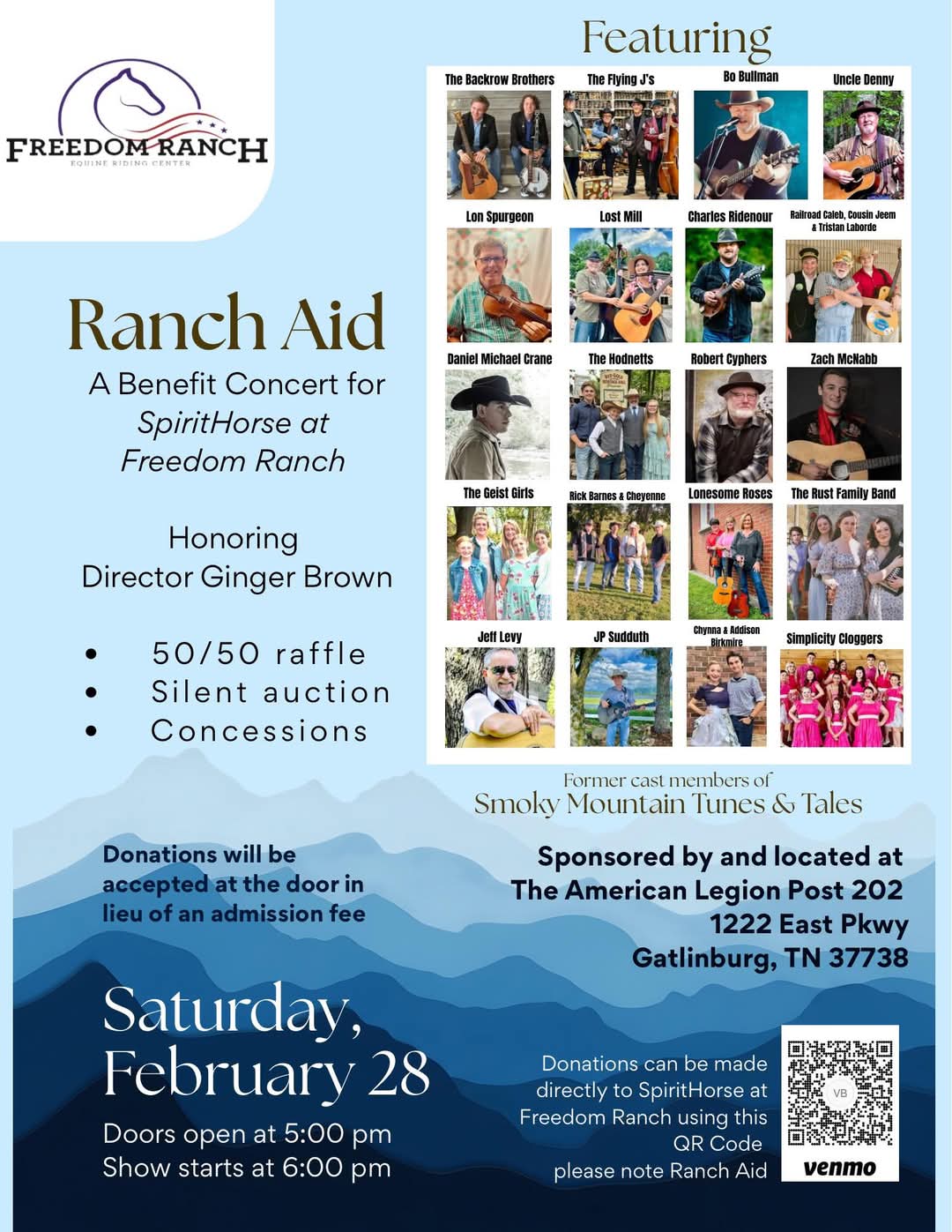Join us for Ranch Aid, a special benefit concert supporting SpiritHorse at Freedom Ranch and honoring Director Ginger Brown.