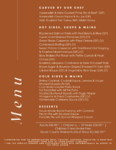 Enjoy a full Thanksgiving spread prepared by Chef Jeremy Hemen, including a carving station, hot entrées, fresh sides, and indulgent desserts.
