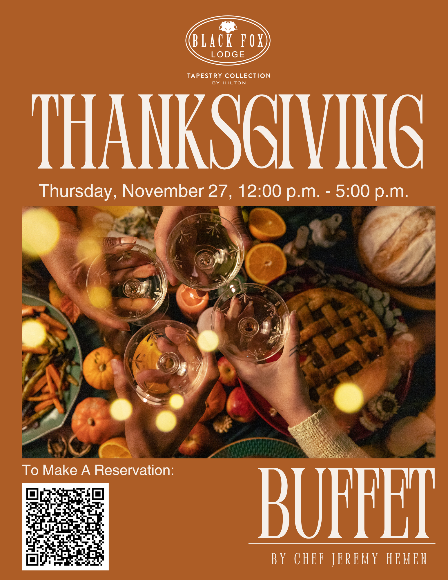 Celebrate Thanksgiving with an unforgettable dining experience at Black Fox Lodge – Tapestry Collection by Hilton. Gather with family and friends for a warm, delicious, chef-crafted holiday buffet featuring classic favorites and seasonal dishes.