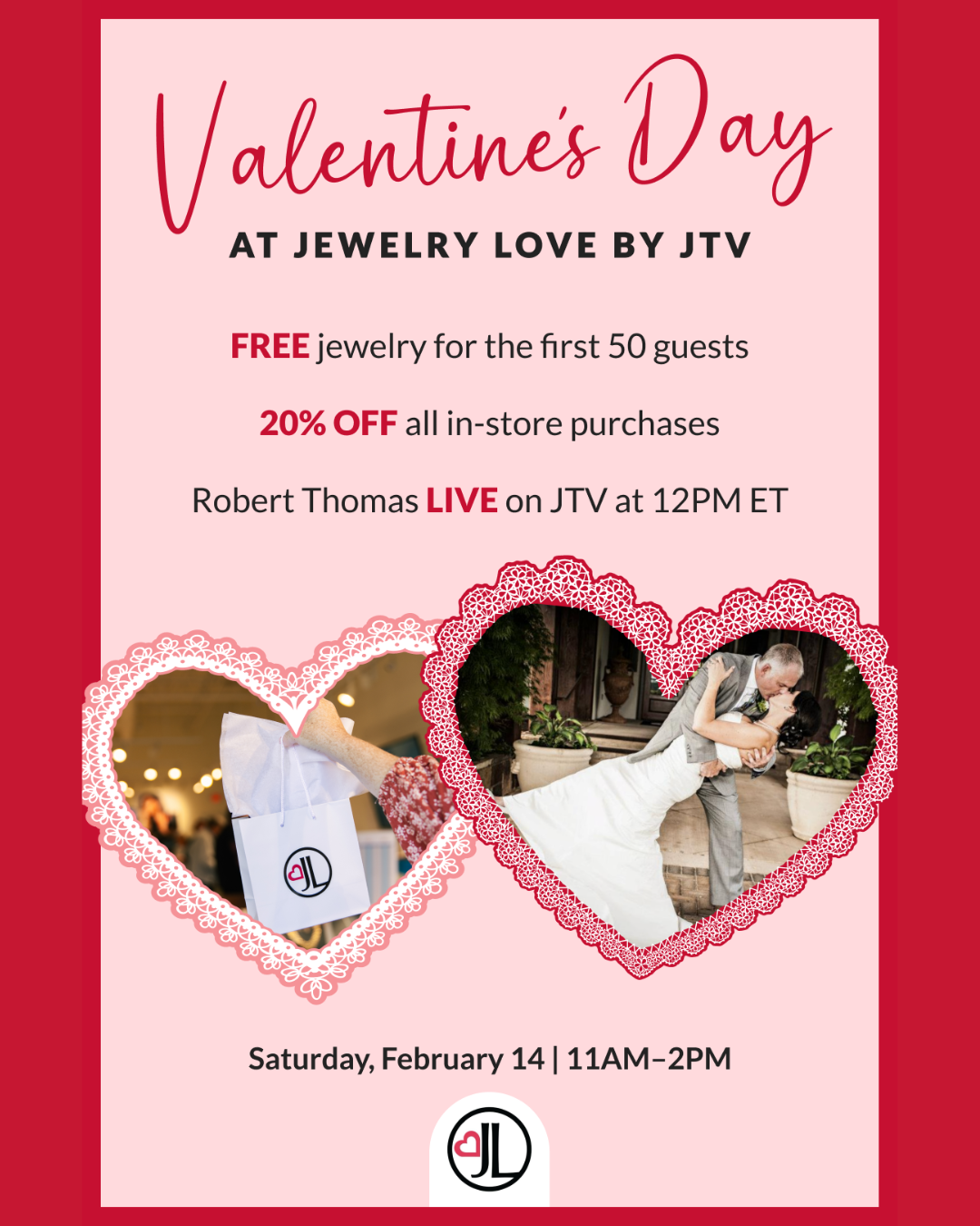 Join us Friday, February 14, from 11 AM–2 PM for a special in-store celebration at Jewelry Love by JTV with JTV host Robert Thomas and his wife.