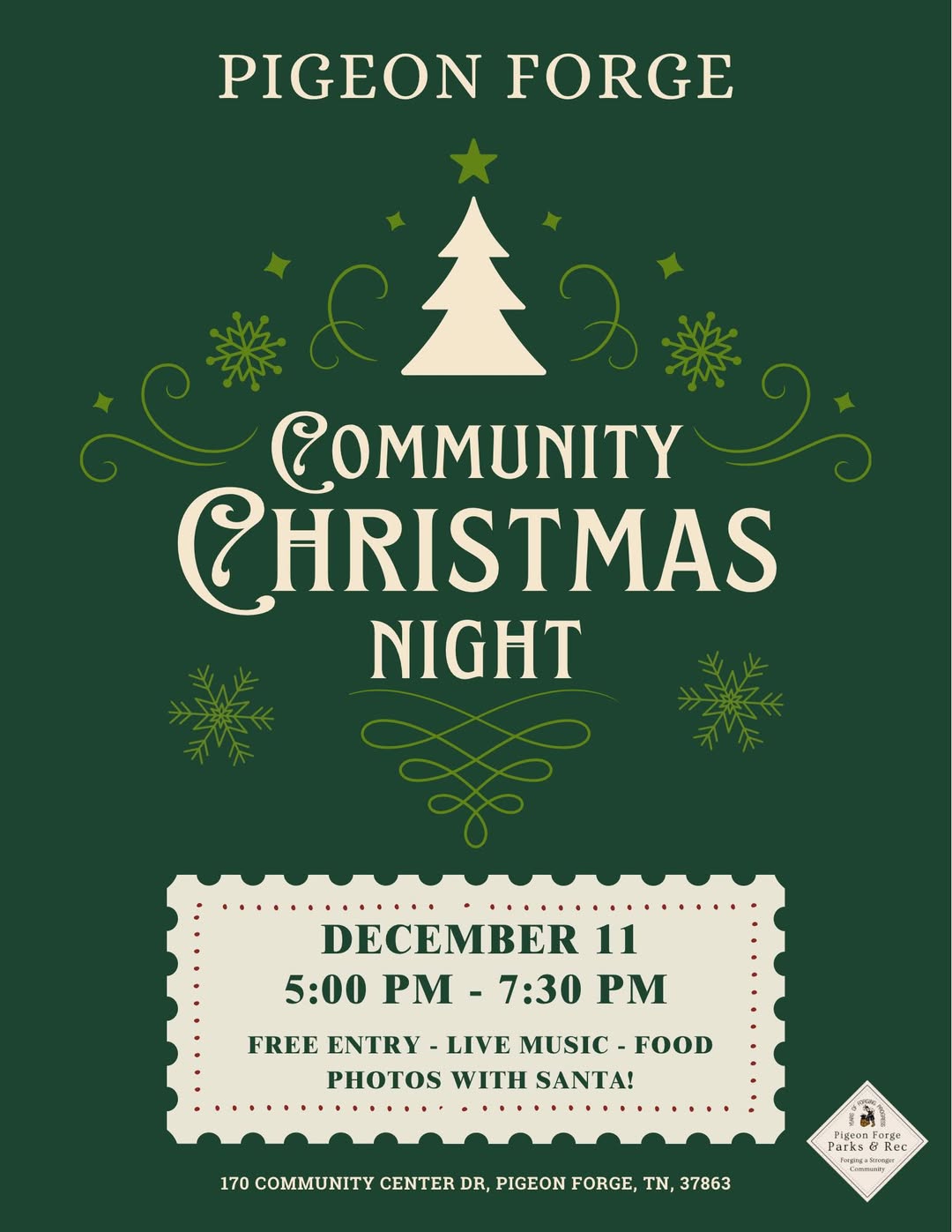Pigeon Forge Community Center , United StatesJoin us for Community Christmas Night, one of our favorite evenings of the year! 🎄✨ Celebrate the season with families from across our community, enjoy the festive atmosphere, connect with friends and neighbors, and make special memories together. This family-friendly event is the perfect way to kick off the holiday season! Come be a part […]